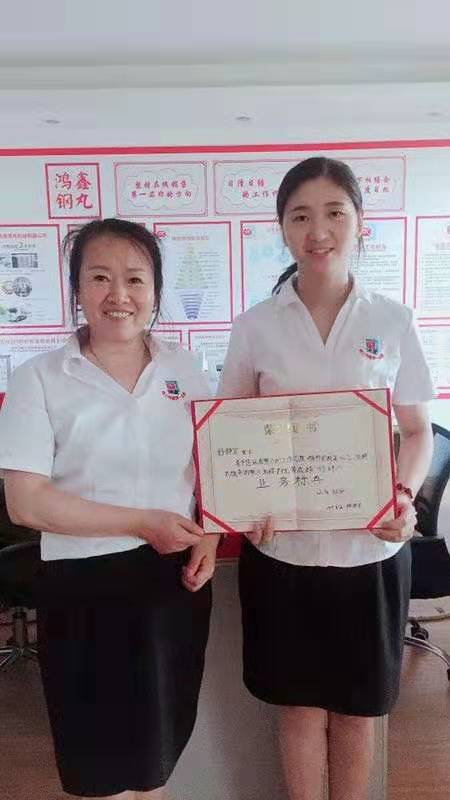 鴻鑫鋼丸員工舒靜宜獲得“業(yè)務標兵”