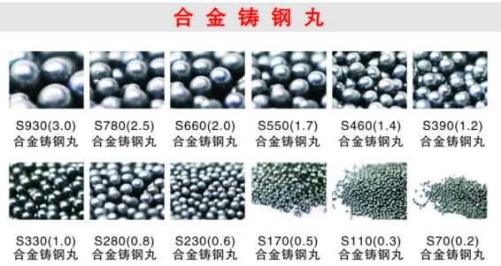 1、合金鑄鋼丸金相組織嚴密,粒度均勻,能消除應力,提高工件表面強度。