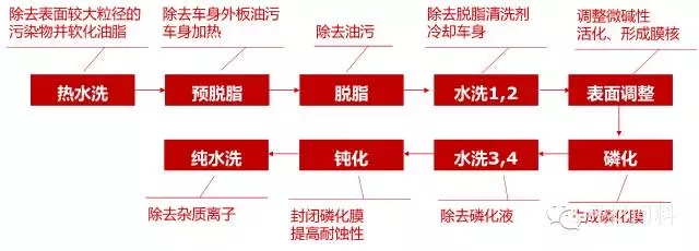 為獲得汽車涂層的耐久性、耐腐蝕性,汽車車身都采用磷化處理作為涂裝的前處理,磷化膜的功能是提高涂布在其上的涂膜(電泳涂膜)的附著力和耐蝕性。